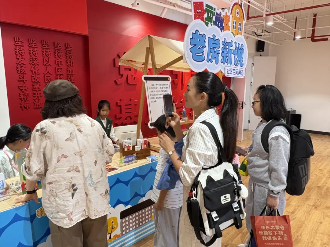 “社区空间再造”板块中,“声影变迁”摊位由少年宫影视社团搭建迷你配音间,参与者可为经典影片中的弄堂生活片段进行拟音配音练习,沉浸式重现里弄生活氛围;“老房新说”环节由杨浦少年邮局设计“杨浦滨江+228街坊”双面拼图,完成拼图的参与者可获得专属纪念邮戳,以此串联起杨浦居住变迁的时空线索。